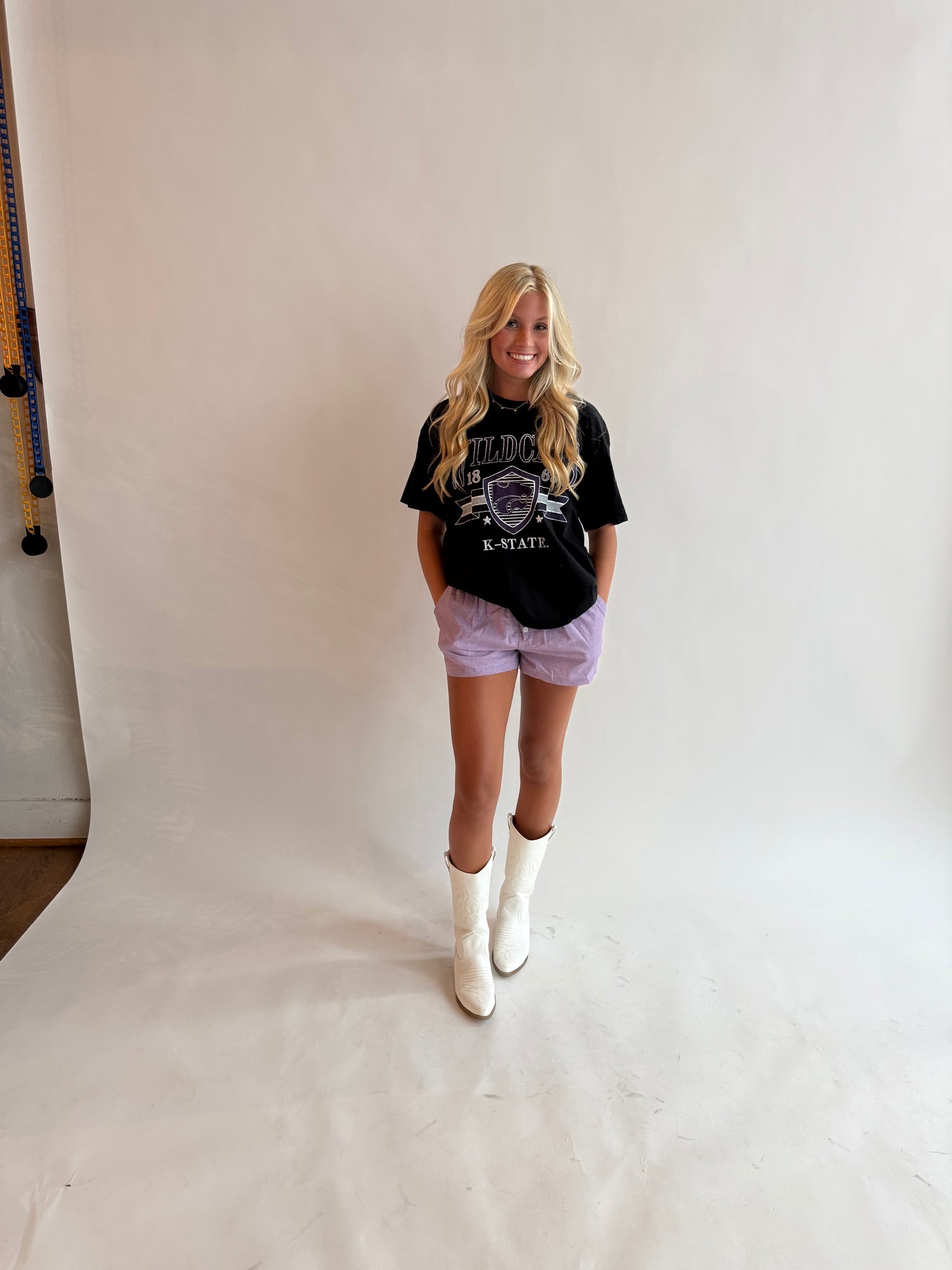 Step into fun and comfort with these Halftime Tie Check Shorts. Featuring a playful purple and white gingham pattern, these boxer-style shorts come with a convenient tie waist for an adjustable fit. Perfect for lounging or casual days, they blend style and ease effortlessly.