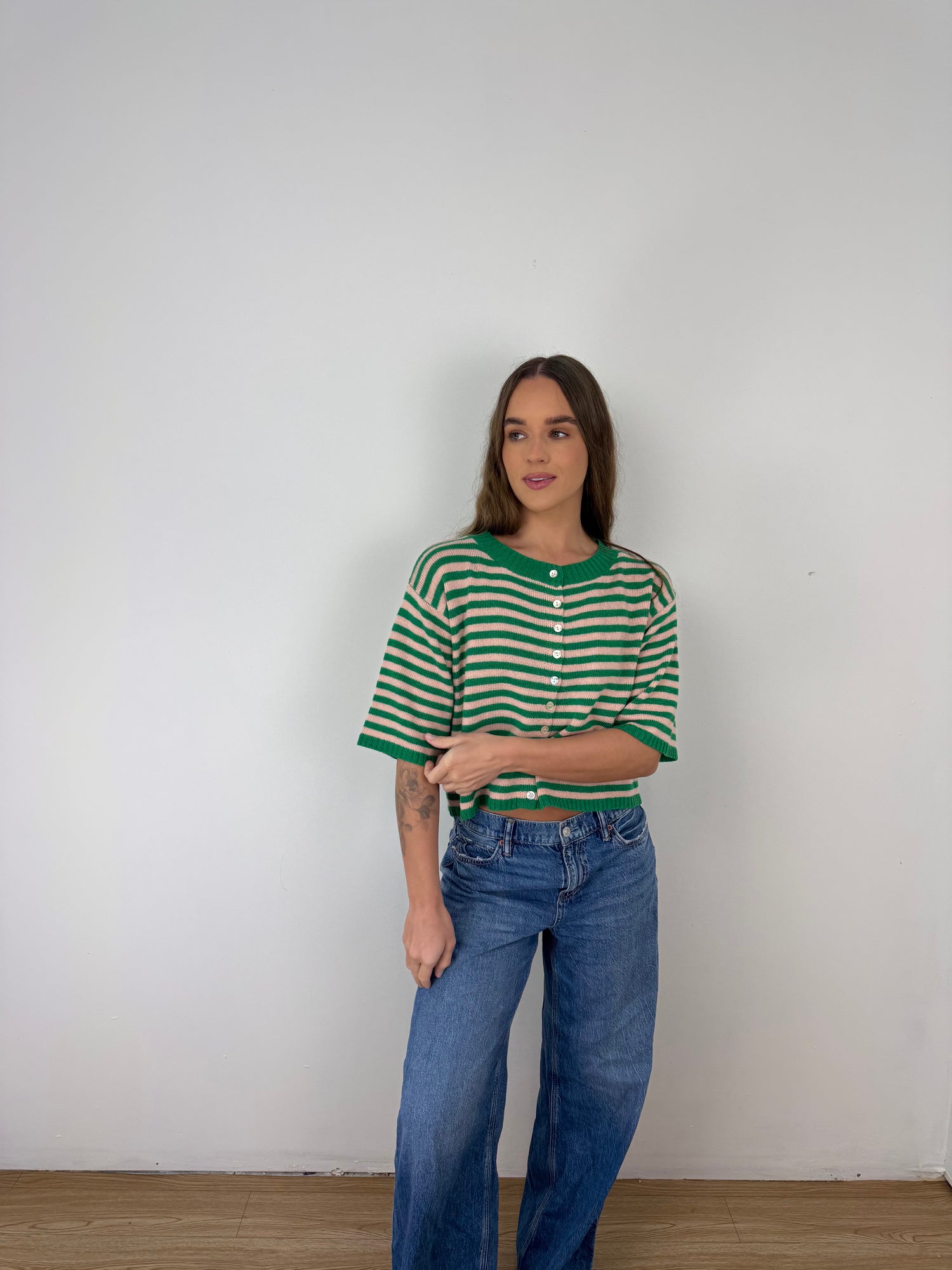 The perfect lightweight striped cardigan for the transition months, but is light enough to be worn into the summer months too!